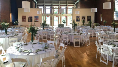 Renovated in 2016, Alumnx Hall showcases breathtaking architecture that seamlessly blends historic charm with modern sophistication. Soaring high ceilings adorned with exposed beams create an atmosphere of grandeur, while newly finished hardwood floors add warmth and elegance to the space. The distinctive mezzanine overlooks the picturesque College Green, offering guests a unique vantage point and adding an extra dimension to your event.